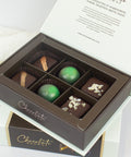 A celebration of nutty indulgence – this 6-pack features salted pistachio crunch, macadamia ginger, and whiskey walnut chocolates. Each piece pairs roasted nuts with rich, smooth chocolate for a perfectly balanced, flavour-packed treat.