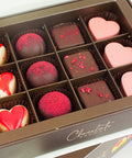 Fall in love with every bite, this romantic 12 pack features handcrafted chocolates made with care and wrapped in rich couverture, it’s the perfect way to share a little sweetness.